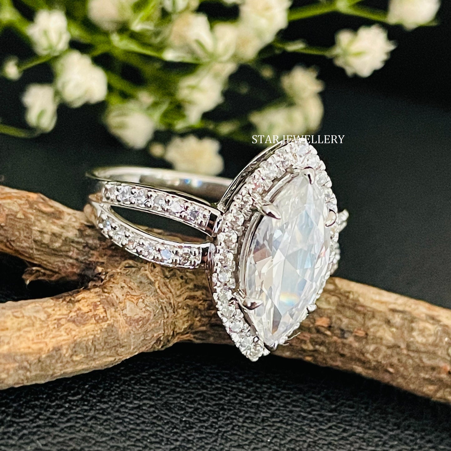1.50 CT IGI Certified Marquise Cut Lab Grown Diamond Engagement Ring, 14K Solid Gold Split Shank Marquise Cut CVD Wedding Proposal Ring