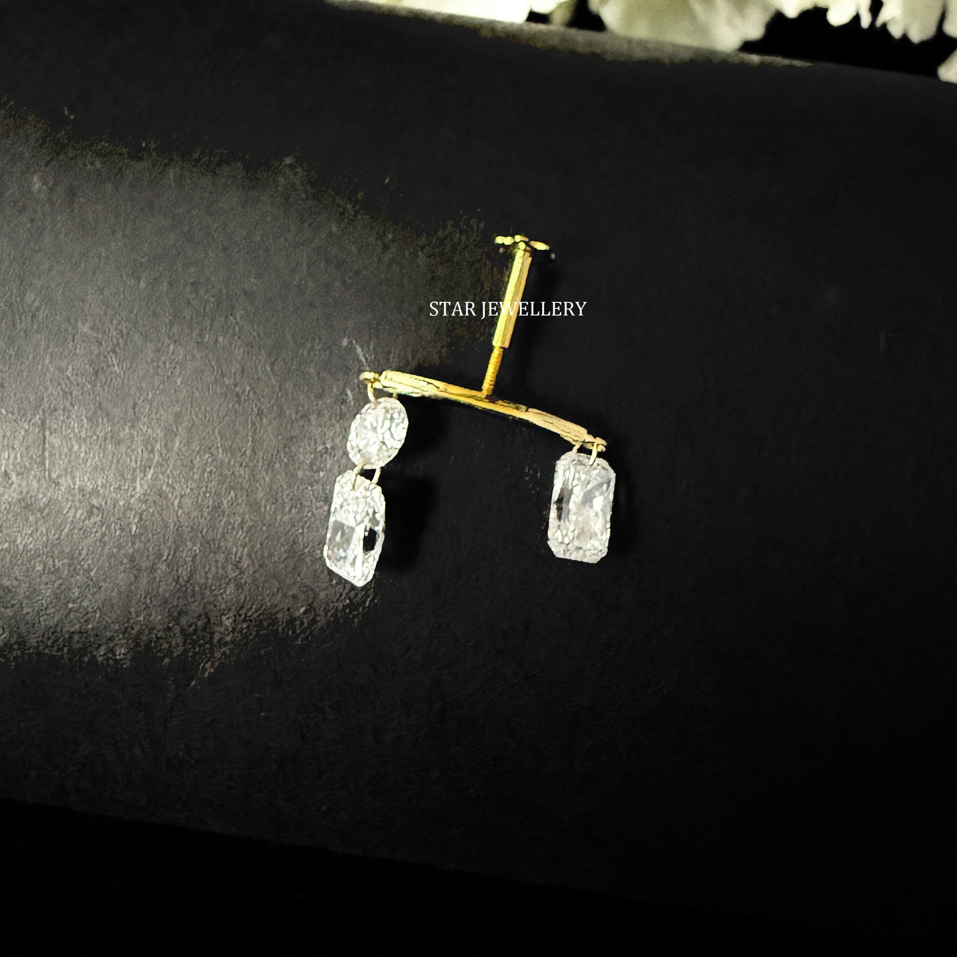 Floating Marquise and Round Diamond Drape Earring with 16g & 18g Flat Back Threaded Post Stud, Unique Ear Set Up Piercings, Floating Studs