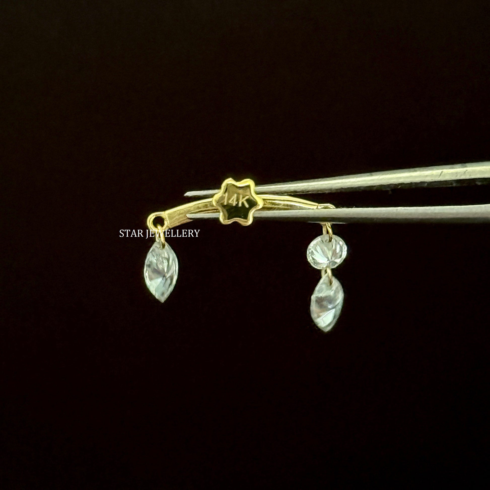 14K Gold Diamond Drape Earring: Marquise & Round Floating Stud