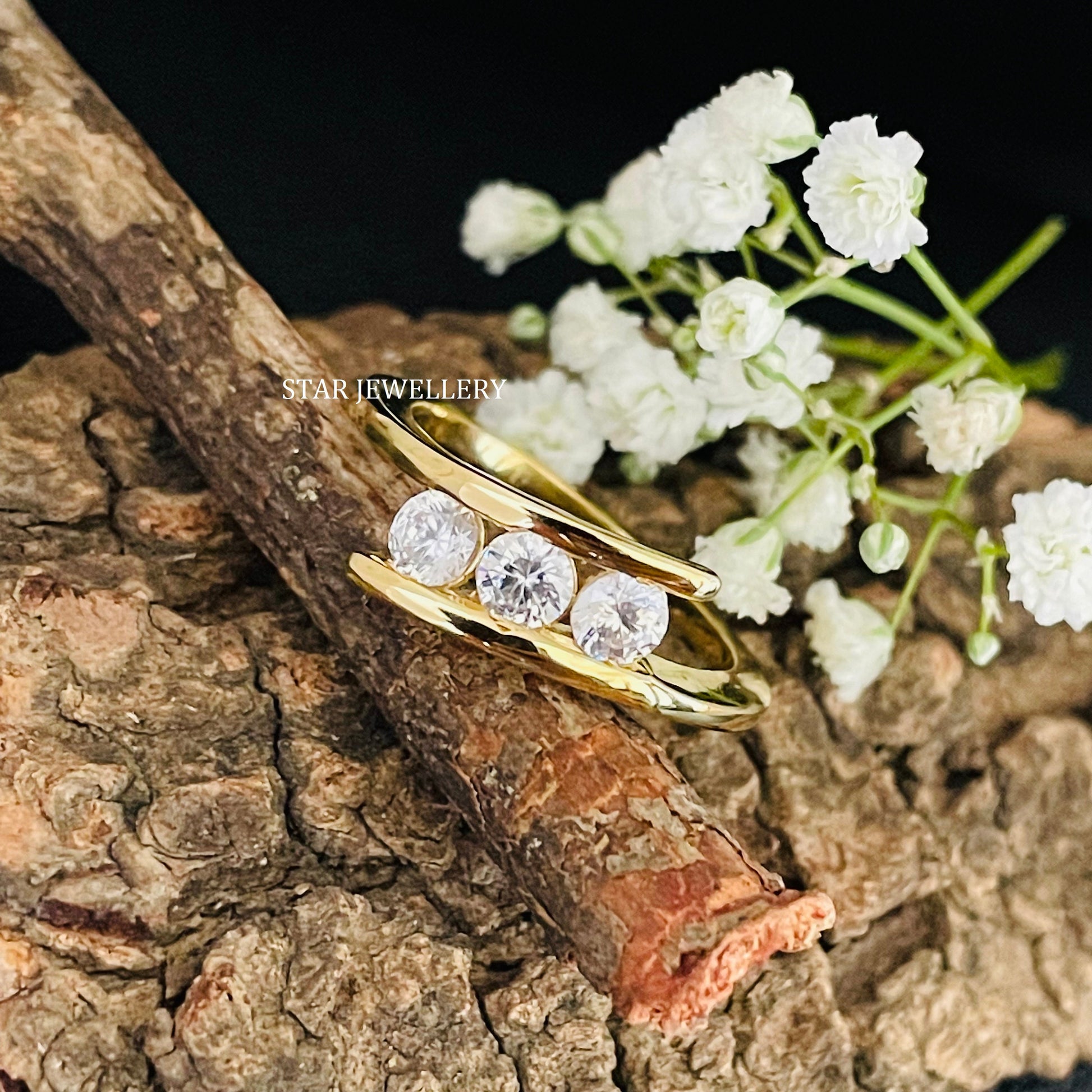 14K Solid Gold Bar Set Three Stone Moissanite Engagement Ring, Three Stone Brilliant Cut Moissanite Valentine Ring for her, Solitaire Wedding Ring