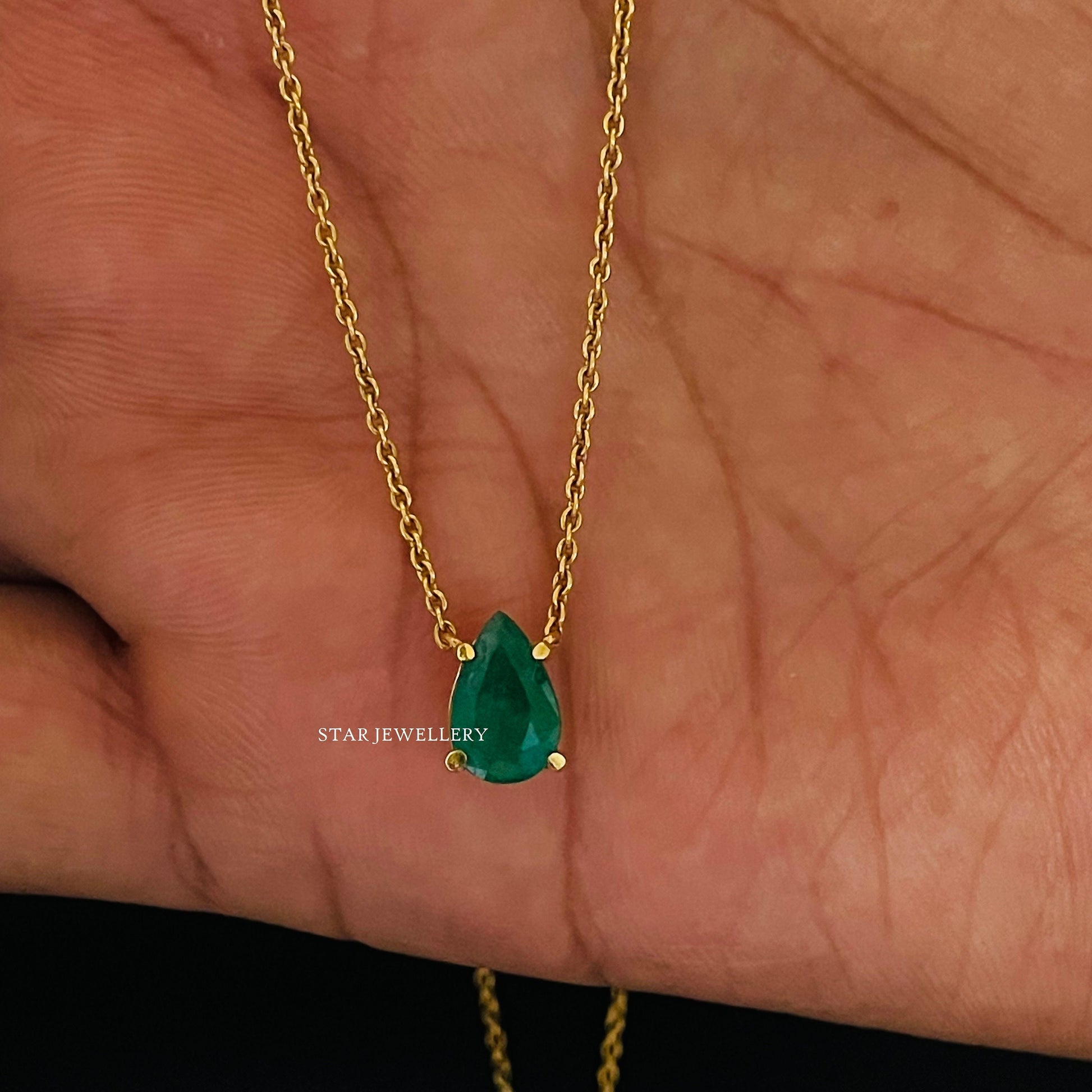 14K Solid Gold Pear Cut Emerald Necklace / Prong Set Pear Moissanite Necklace / Pear Cut Solitaire Gemstone Necklace for her / Gift for Mom