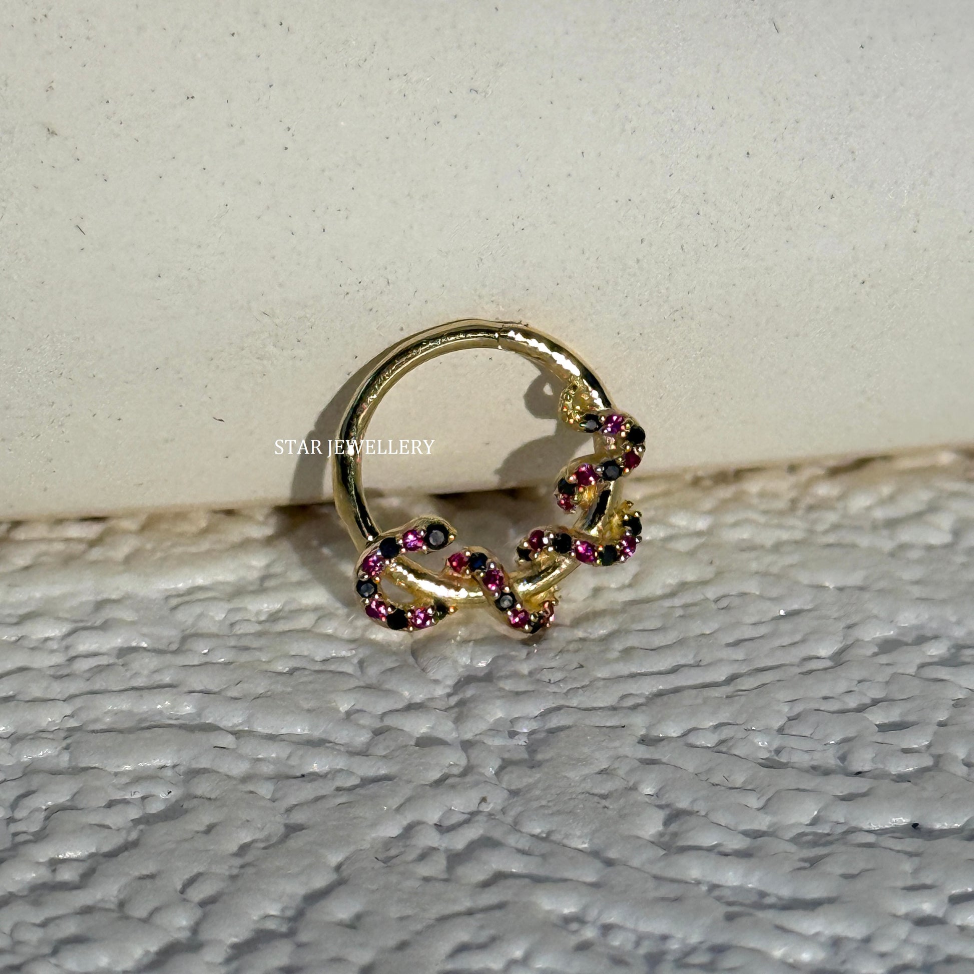 14K Solid Gold Red and Black Coral Sanke Daith Piercing, Coral Snake Solid Gold Septum Nose Ring14K Solid Gold Black Diamond Snake Daith Piercing for her, Solid Gold Snake Daith Clicker
