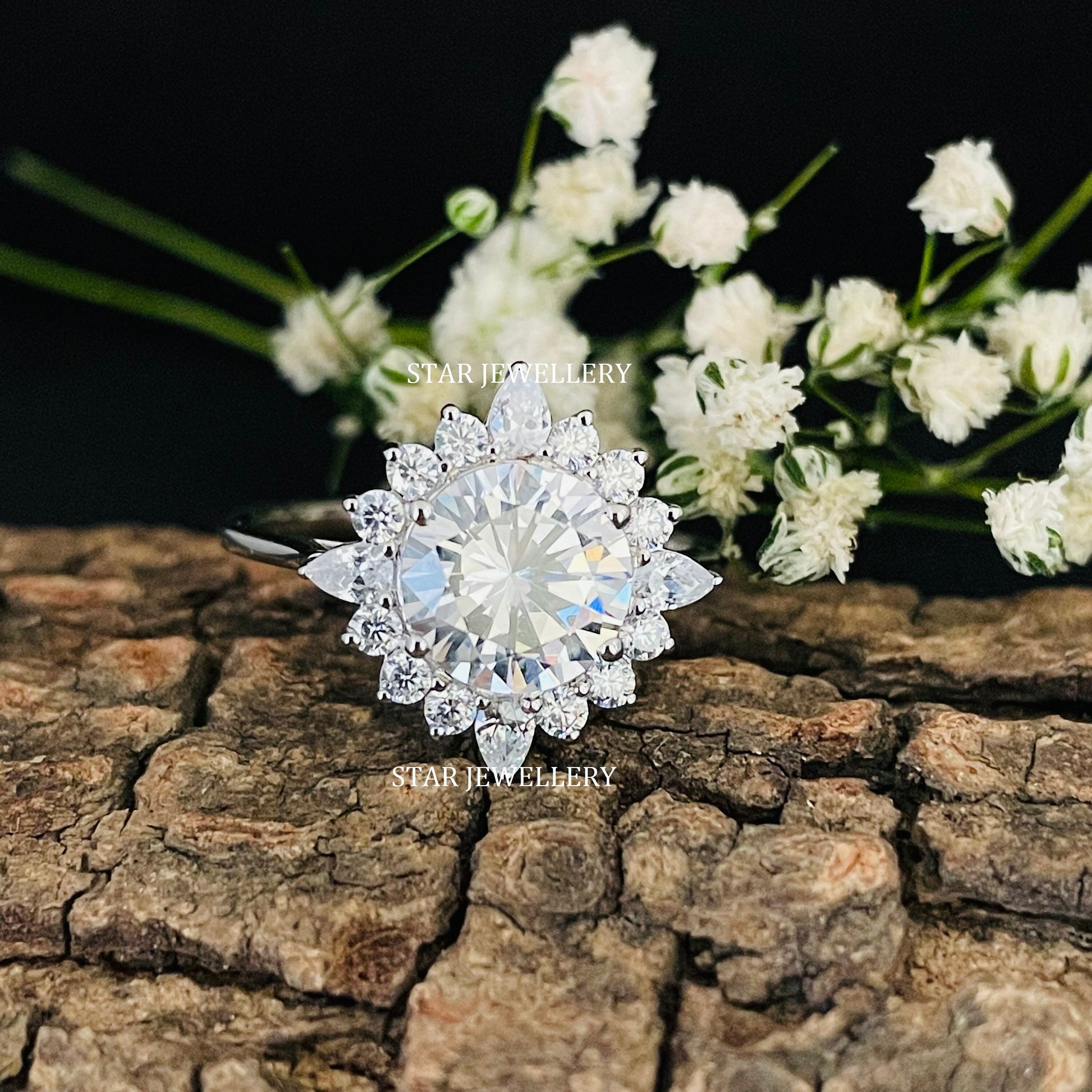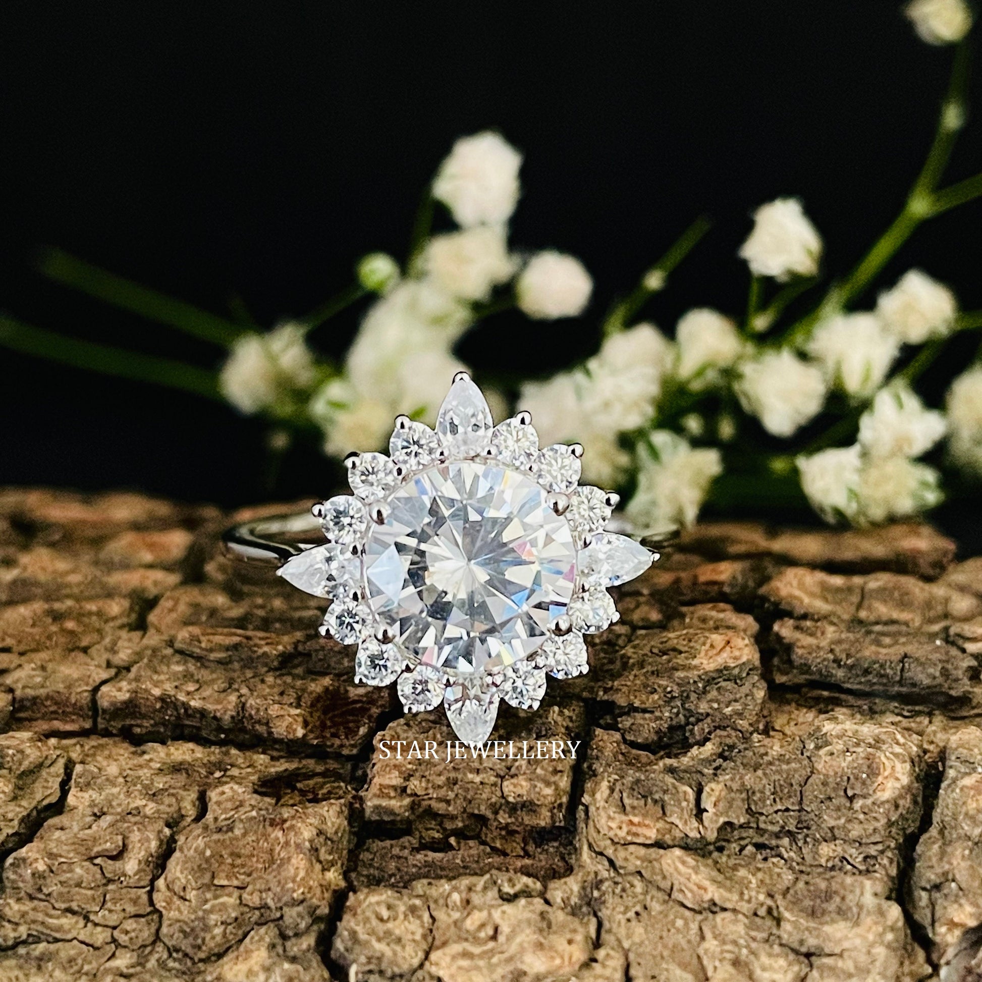 2.00 Ct IGI Certified Lab Grown Diamond Halo Engagement Ring for her, 14K Solid Gold Halo CVD Diamond Wedding Ring, CVD Solitaire Diamond Halo Ring