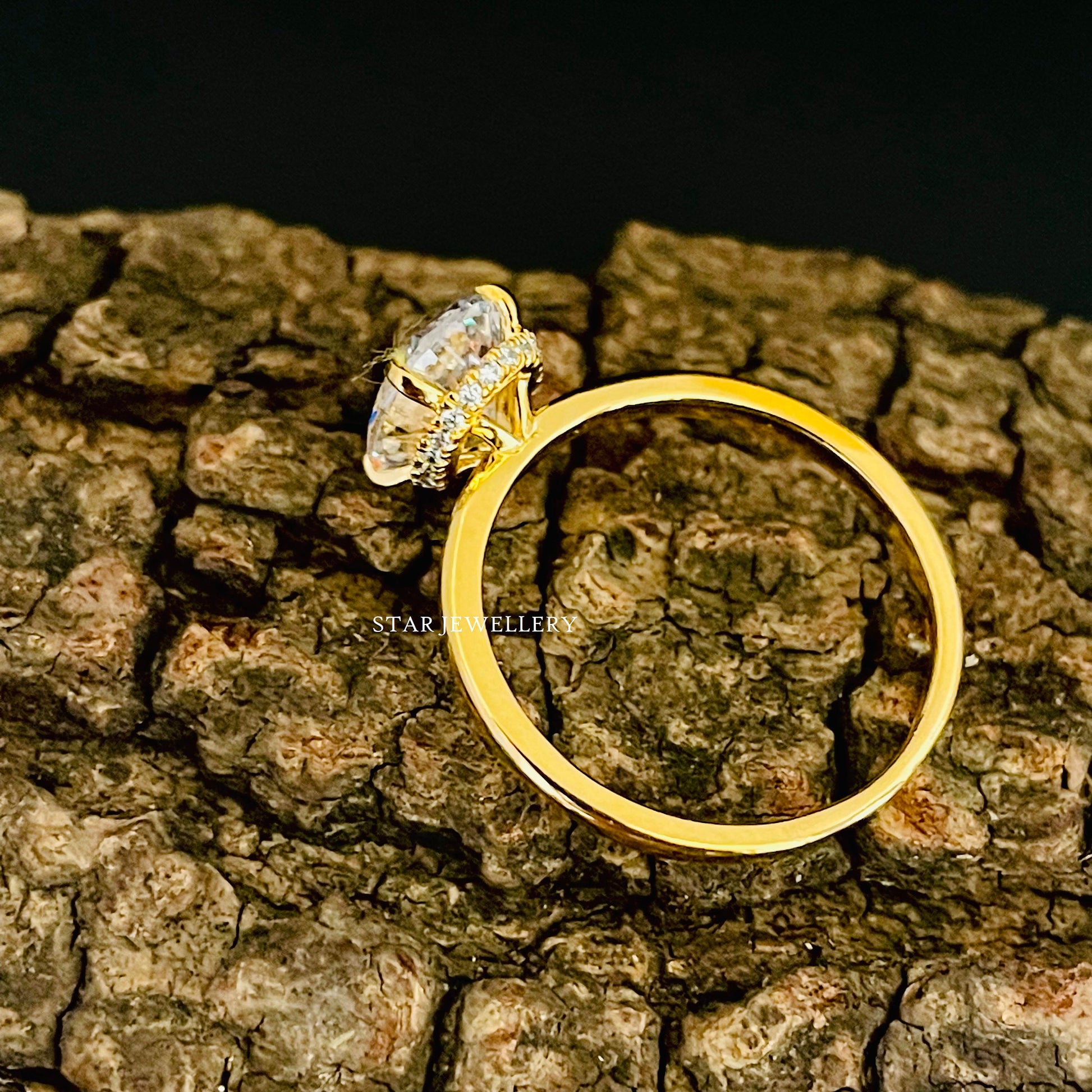 3.00 Ct Colorless Oval Cut Moissanite Hidden Halo Ring, Oval Cut Moissanite Engagement Ring for her, Hidden Halo Oval Moissanite Bridal Ring