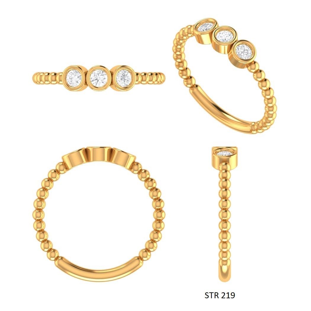 Bezel Set Three Stone Natural Diamond Beaded Shank Diamond Ring