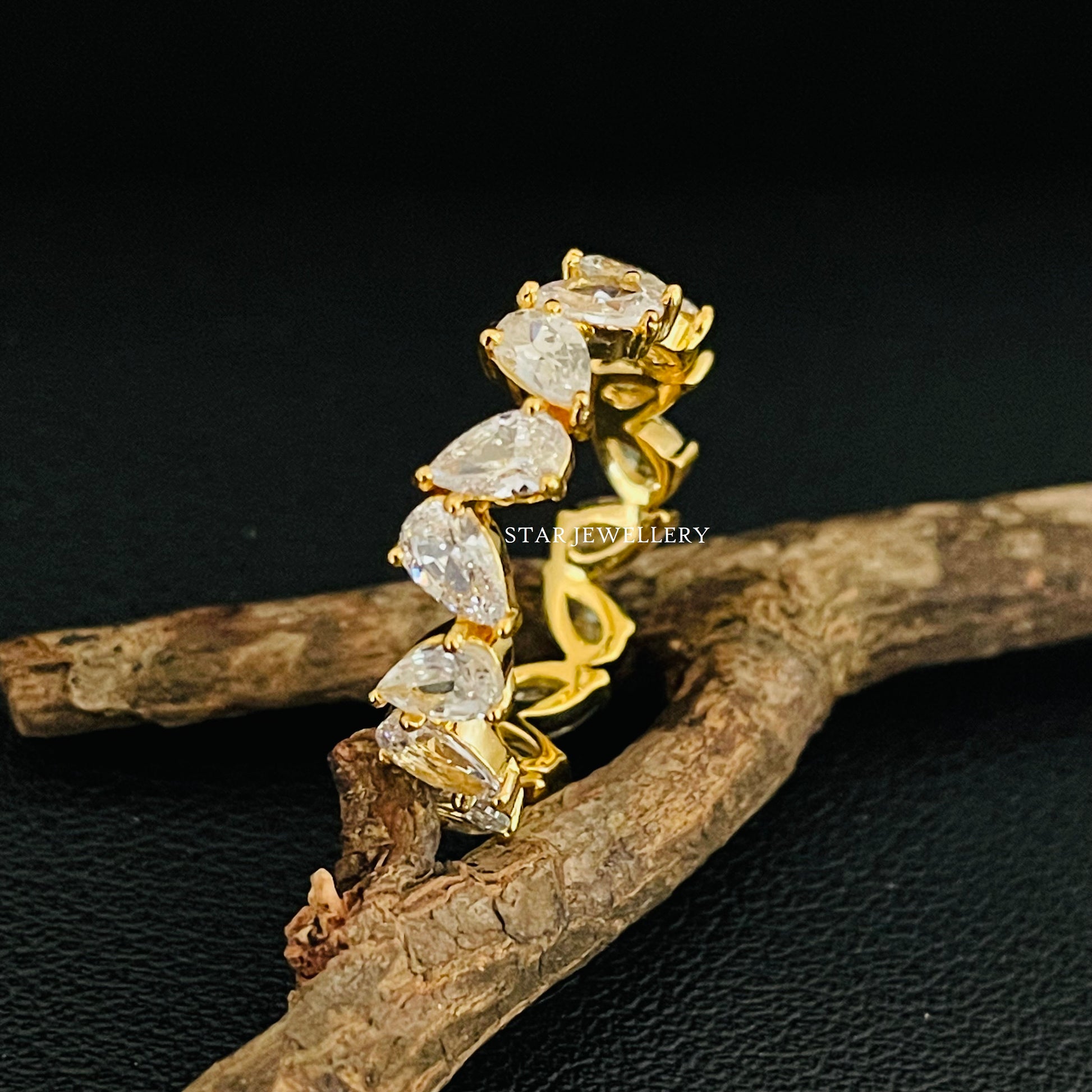 Colorless Pear Shape Moissanite Zig Zag Matching Wedding Band, 14k Solid Gold Pear Moissanite Band Ring, Pear Moissanite Matching Band Ring, Full Eternity Wedding Band Ring for her