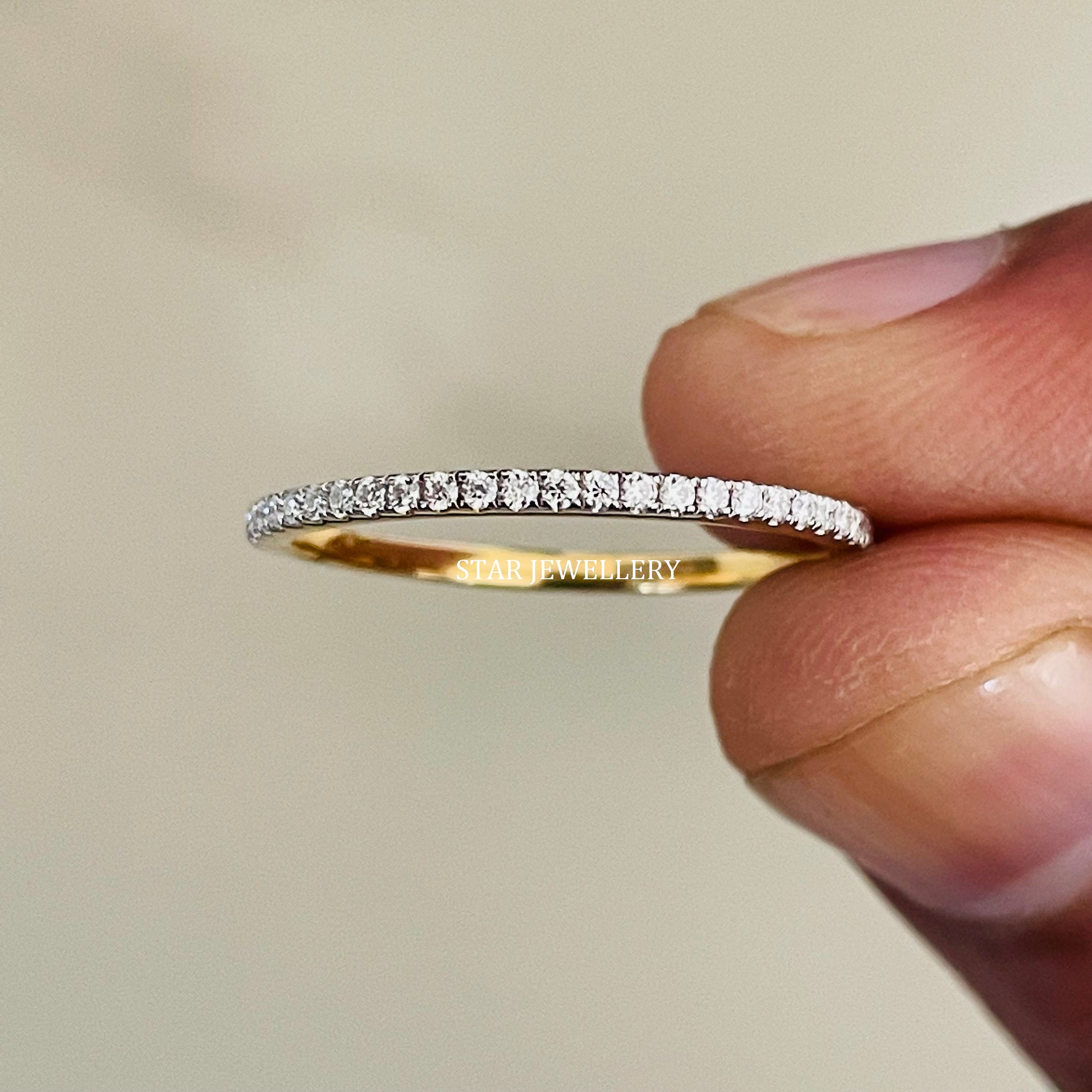 Diamond Eternity Thin Ring, Micro Pave Set Diamond Eternity Band Ring, Diamond Eternity Thin Wedding Band, 14K Gold Diamond Wedding Band