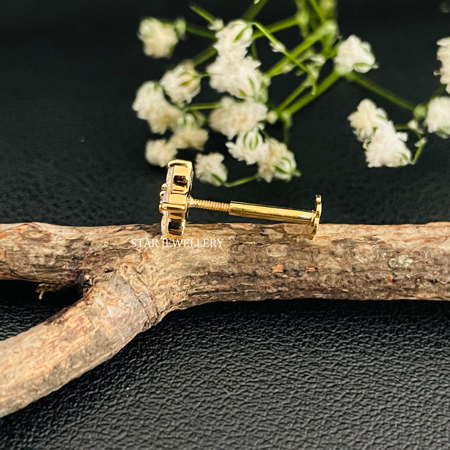 Natural Diamond Flower Stud for Ear Piercing