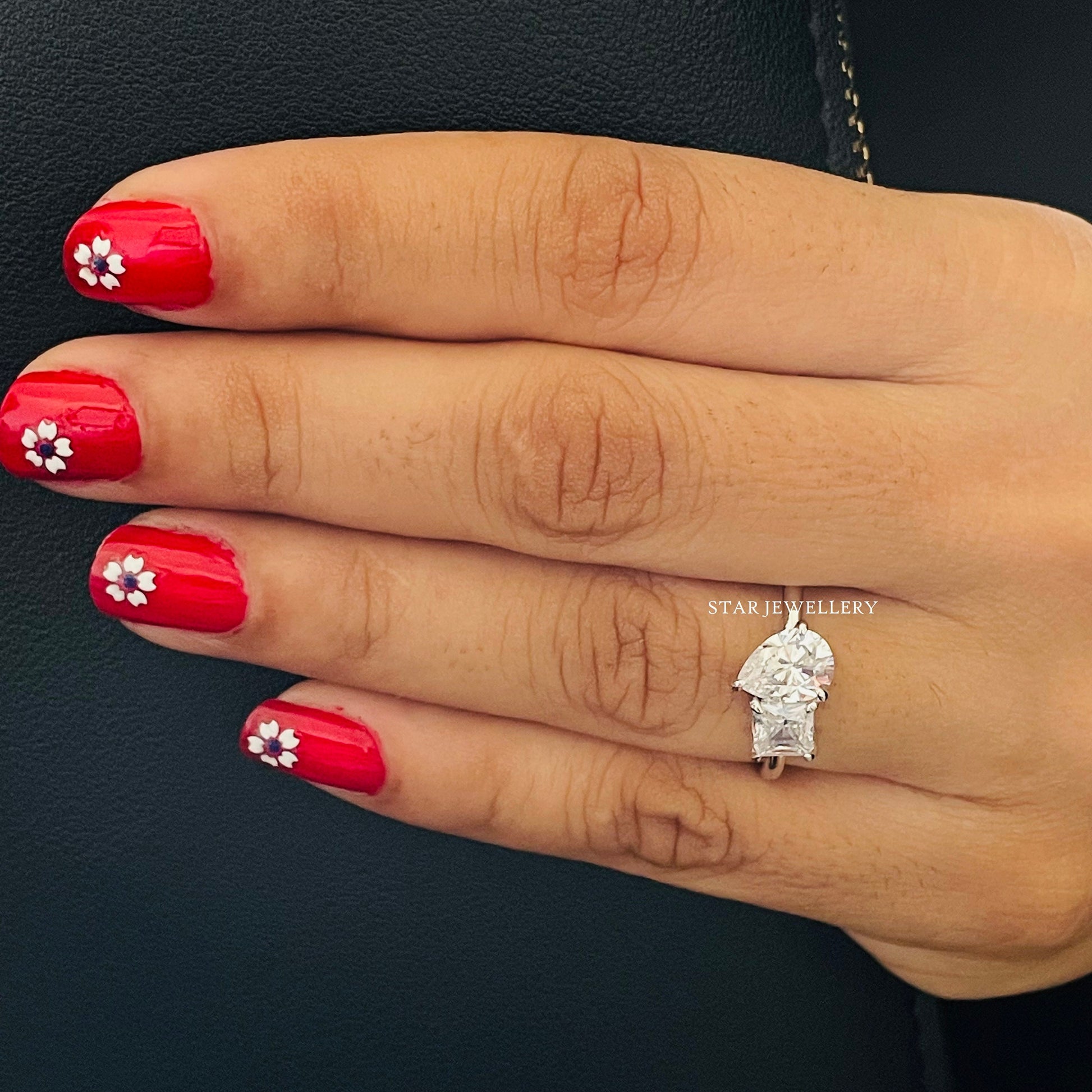 Solid Gold Toi Et Moi Princess Cut & Pear Cut Moissanite Ring, Toi Et Moi Two Stone Moissanite Ring, Princess Cut Toi Et Moi Wedding Ring