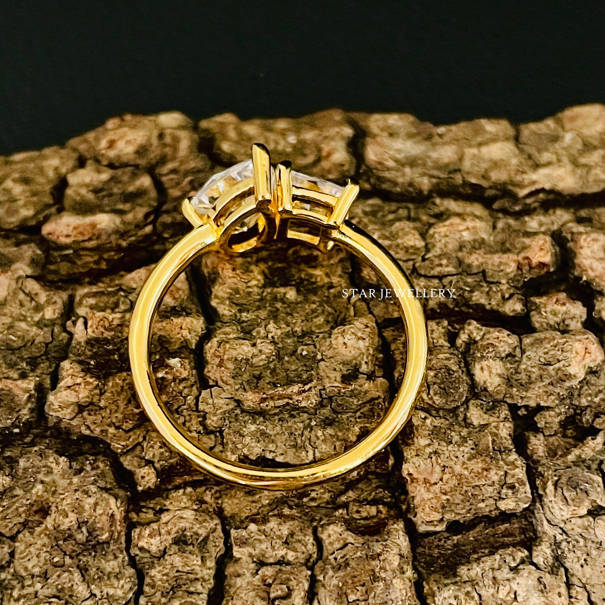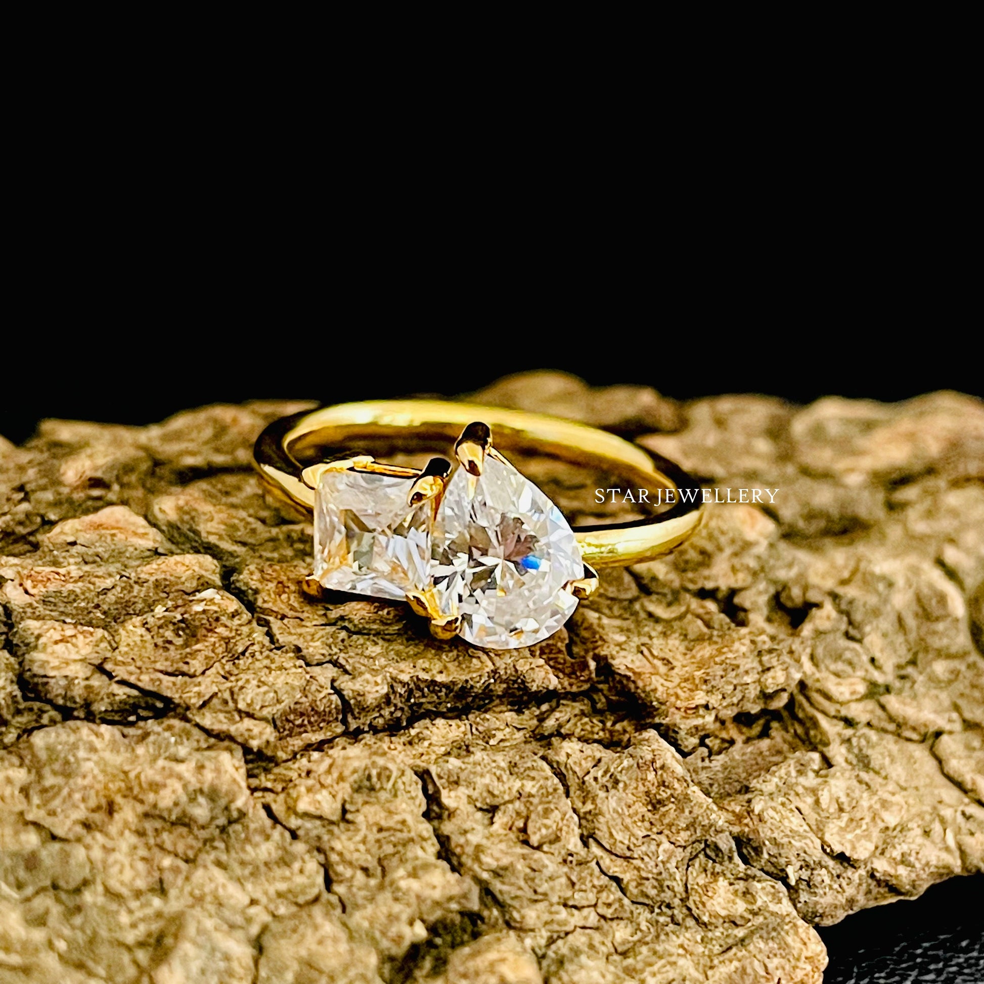 Solid Gold Toi Et Moi Princess Cut & Pear Cut Moissanite Ring