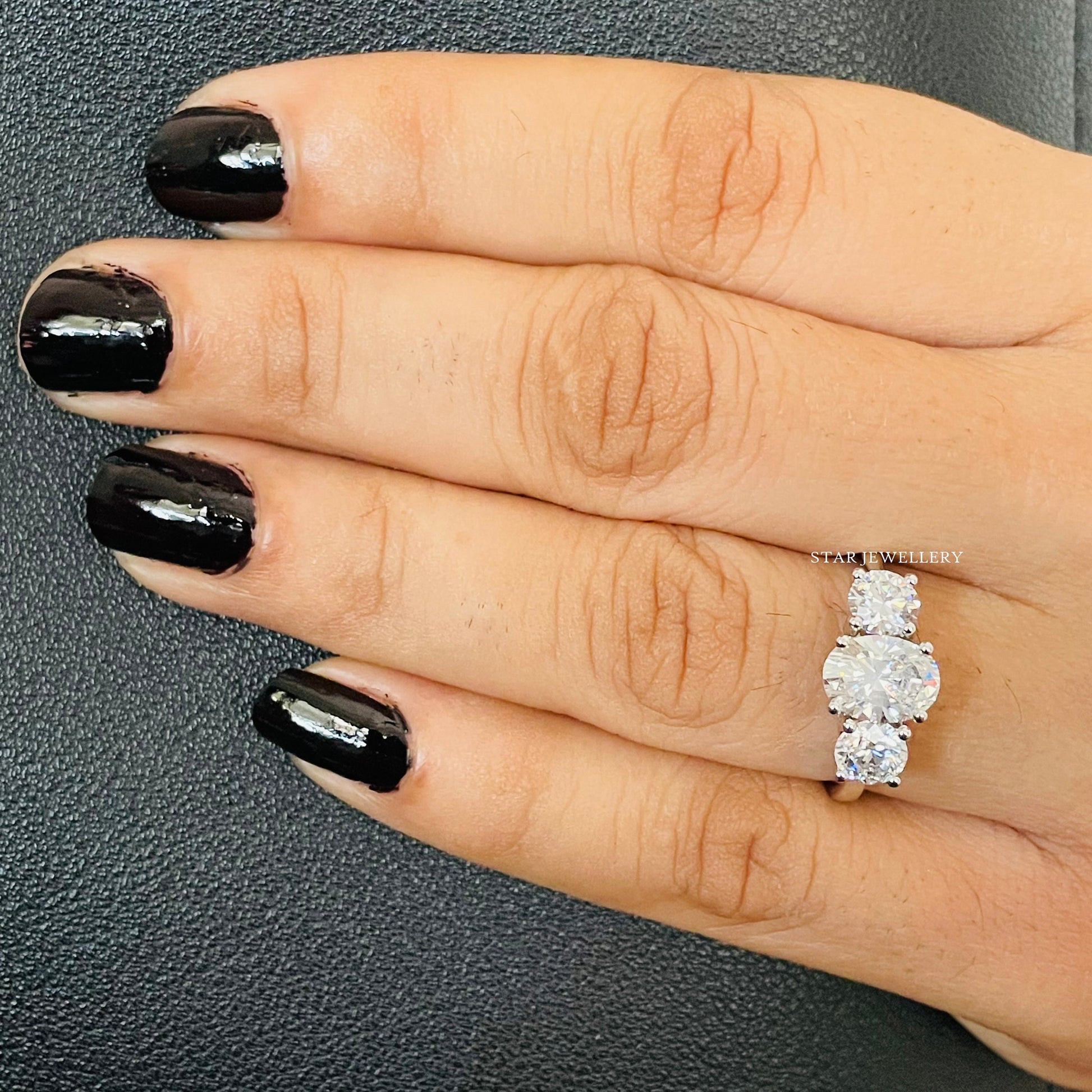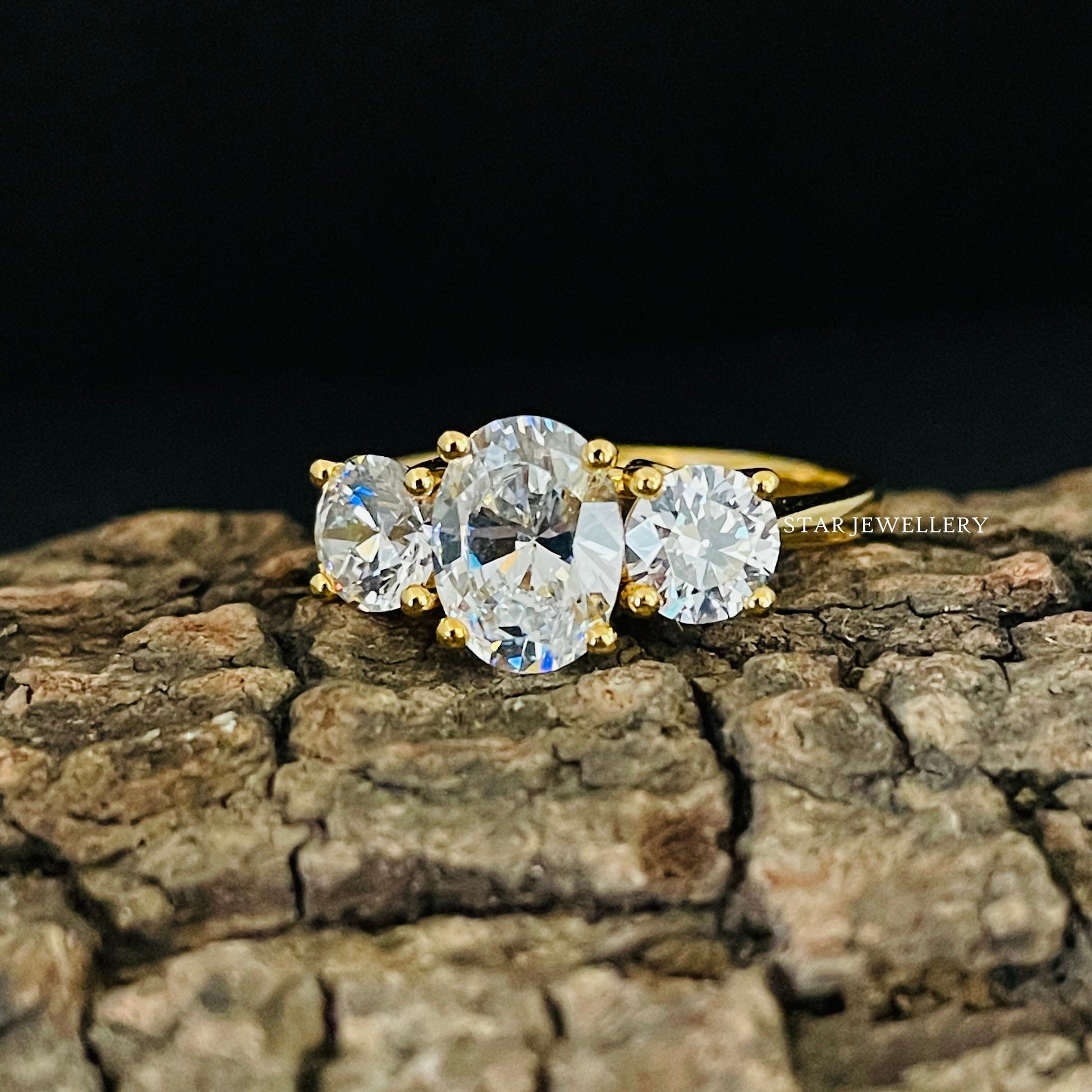 THREE STONE RING, Triple Stone Engagement Moissanite Ring, Wedding Proposal Ring, 2.20 Ct Gold Band Triple Moissanite Stone Purpose Ring for her