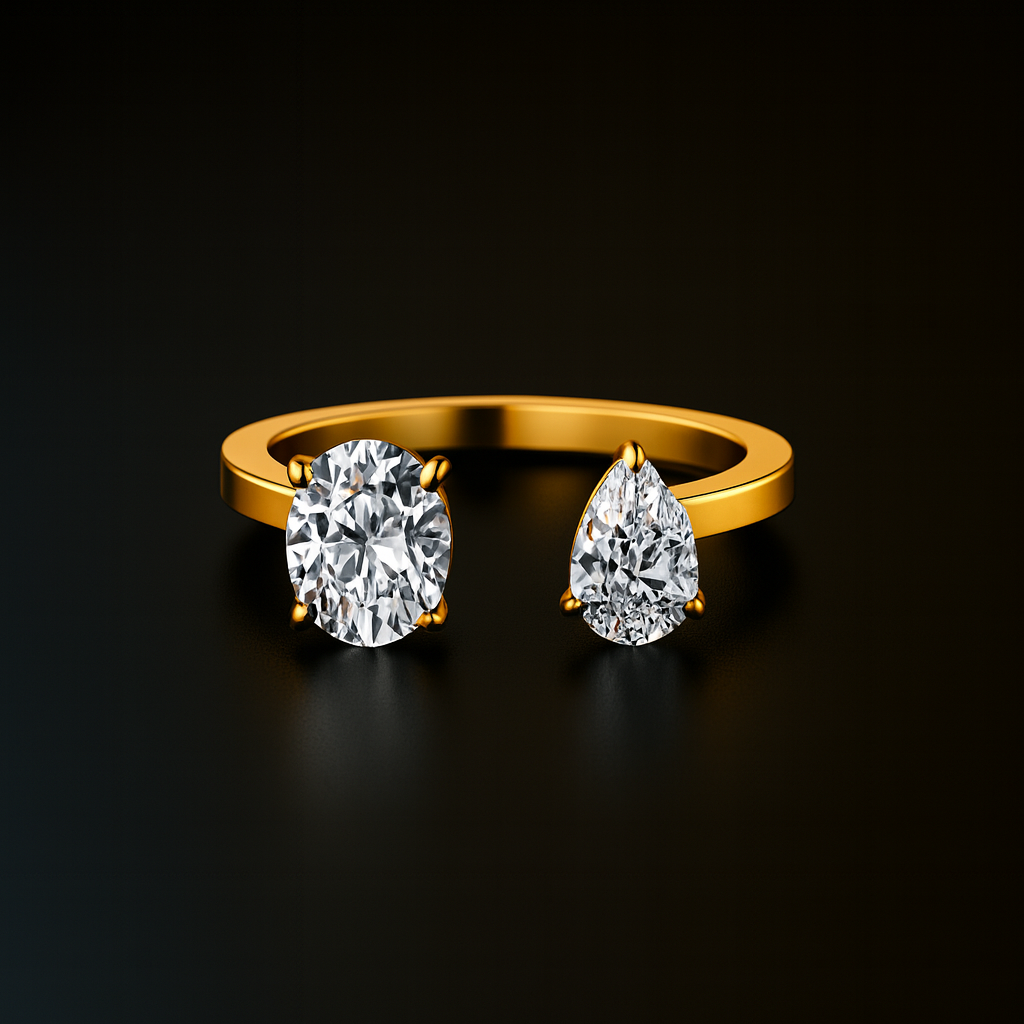 Toi Et Moi Pear Cut and Oval Cut Lab Grown Diamond Engagement Ring